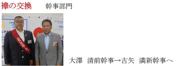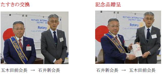 新年度例会にて会長幹事引継ぎ