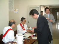 | 「娘が結婚しました」「息子が大学に合格しました」 「過日のゴルフではブービー賞を頂きました」「孫が出来ました、おじいです」等々、ご自身の嬉しかったこと、感激したことなどメッセージにし1,000円〜を添えてニコニコボックスの中へ。会員の動向も良く分かります。 こうして集まった善意は特別会計として奉仕活動の資金になります。 |