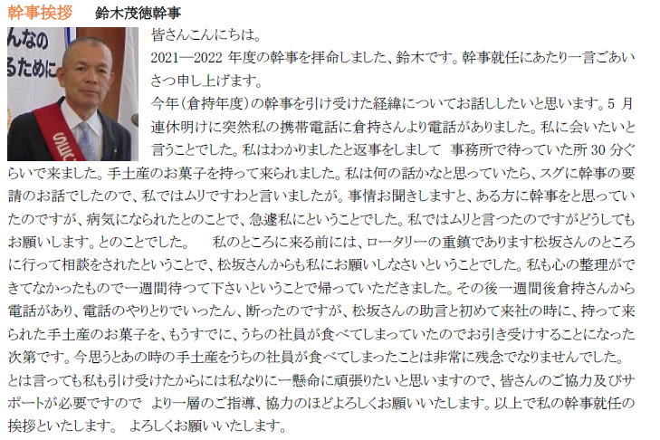 2021-22年度 幹事方針