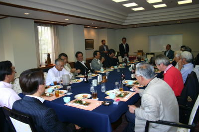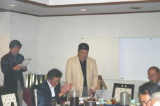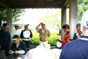 | スタート前の会長挨拶と記念写真(他2名の会員は遅れたため、写っていません)。 | |