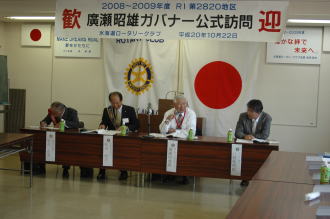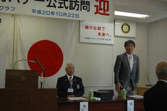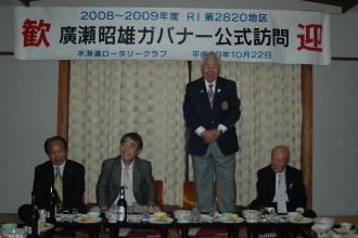 | 委員会報告に丁寧にお答えしてくれるガバナー。 | PM4:30懇親会。秋田会長の挨拶。 | |