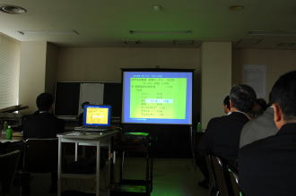 | 廣瀬ガバナーのユーモアに会場が和みました。 | パワーポイントを遠隔操作で・・。 | |